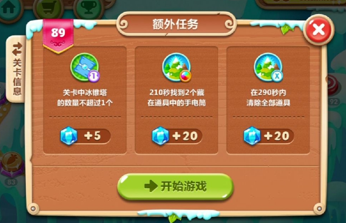 第35关的额外任务要求玩家在关卡中手电筒塔的数量不超过2个,使用手电筒塔消灭120个怪物,并在180秒内清除4个绿色的冰棍道具,这些任务增加了关卡的挑战性,需要玩家在策略上做出针对性调整。完成这些额外任务是获得水晶金萝卜的关键,因此玩家需在布局时优先考虑任务目标,避免因忽视任务细节而导致重复挑战。
